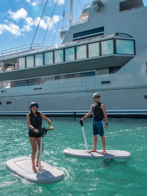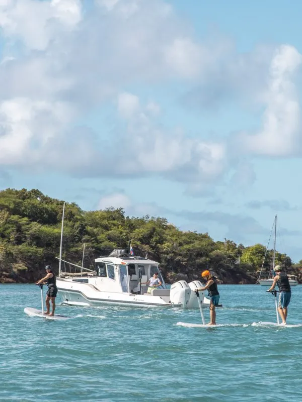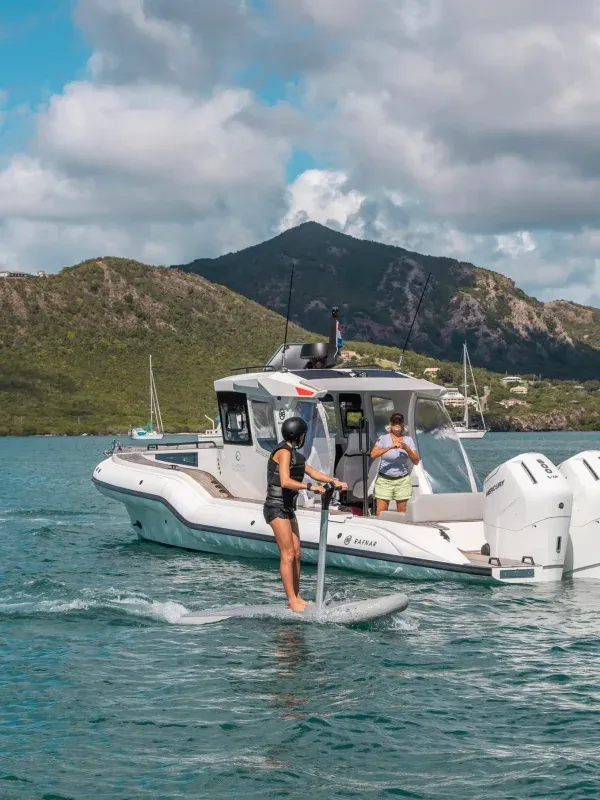 eFoil School, Paddle board and Boat rental center in Antigua! Located Falmouth Harbour, we offer thrilling Efoil experiences that let you fly over Antigua’s beautiful waters like never before. Whether you’re a beginner or an experienced rider, our expert instructors will ensure you have a fantastic time.